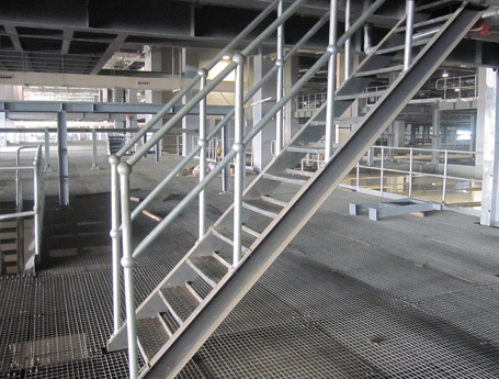 化工廠用鋼格板 鋼格板是用承載扁鋼和橫桿按照一定的間距進行正交組合,通過焊接或壓鎖加以固定的開敞式鋼構(gòu)件;橫桿一般采用經(jīng)過扭絞的方鋼、也可采用圓鋼或扁鋼,材質(zhì)分為碳鋼和不銹鋼鋼格板主要用來做鋼結(jié)構(gòu)平臺板、溝蓋板、鋼梯的踏步板、建筑物吊頂?shù)取? 簡介 ···